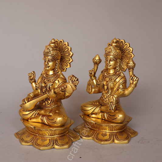 Superfine Brass Sarasvati Lakshmi Idols Pair