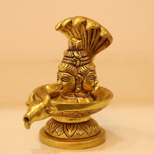 9.5" Brass Shiva Mukhlingam With Nagabharanam Table Decor