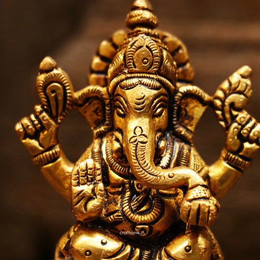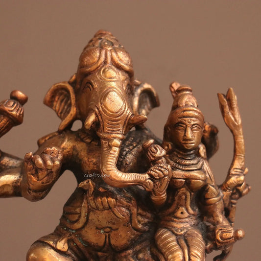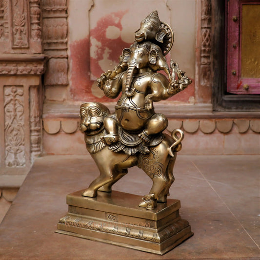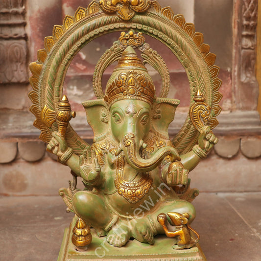 Brass Heramba Ganesha Statue Sitting in Loin 22.5"