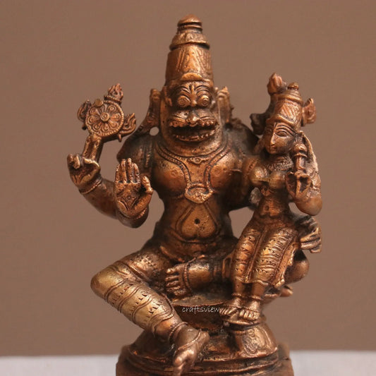 Brass Sudarshana Vishnu Idol with Narasimha on the reverse side