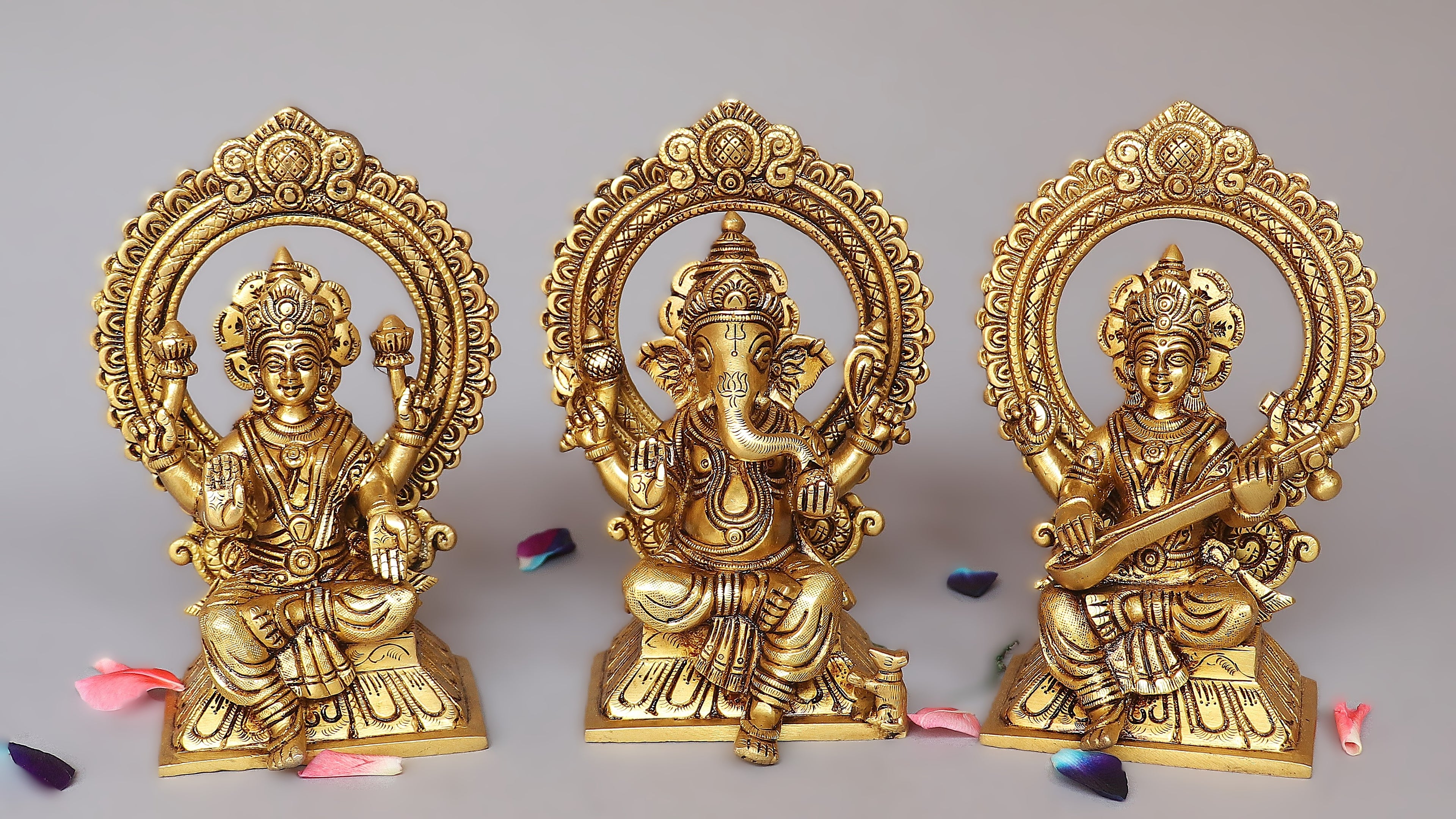 Superfine Ganesh Lakshmi Sarasvati Brass Idols