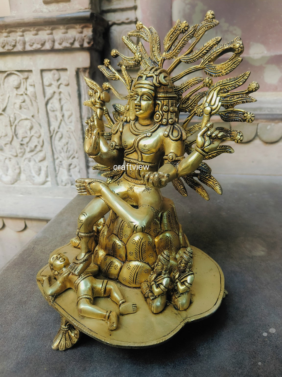 Experience the divine presence of Shiva through this 11.5-inch brass statue. The intricate details and craftsmanship bring life to the Nataraj form, symbolizing cosmic dance and harmony. Because Shiva represents destruction and renewal, this statue is ideal for meditation spaces and homes.
