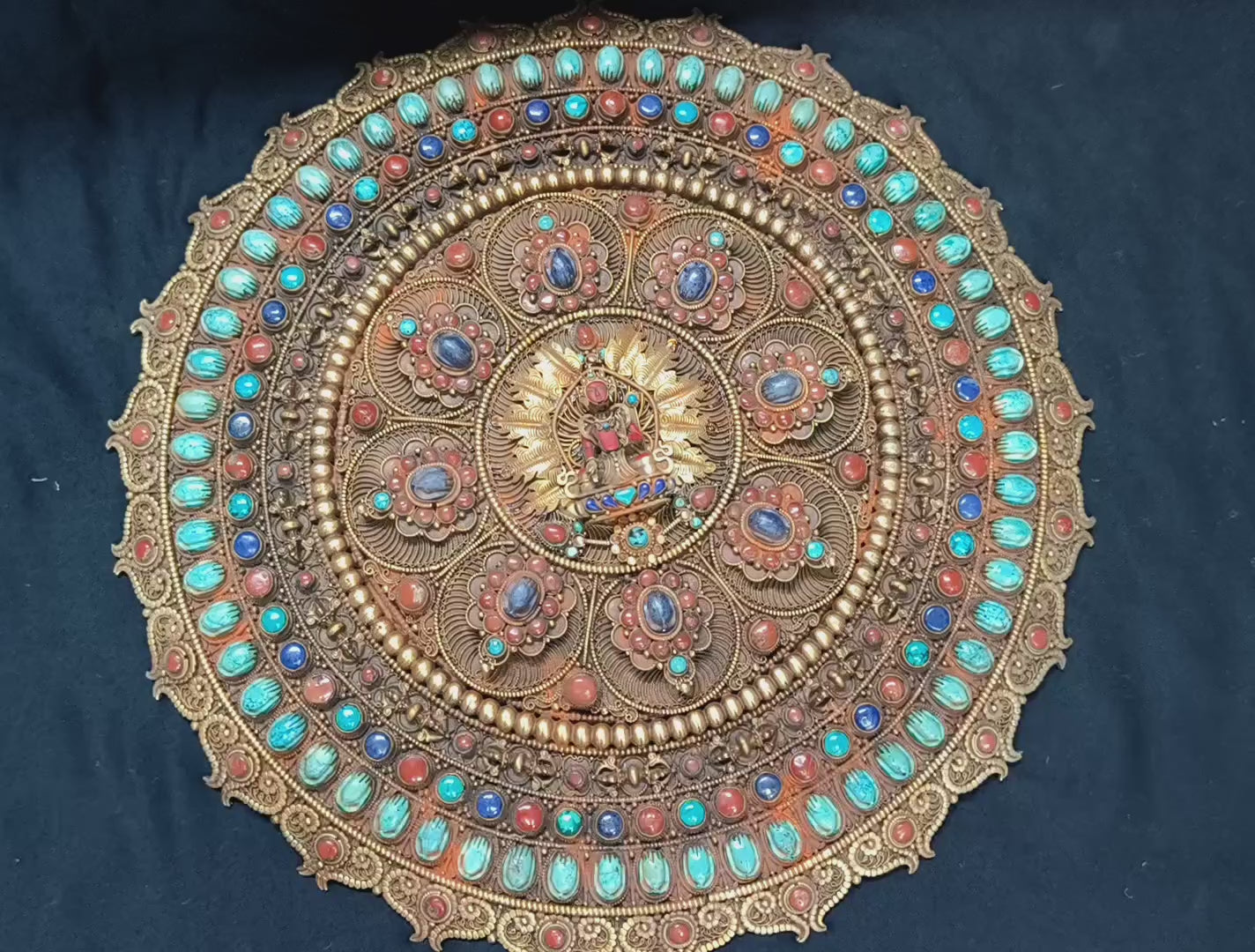 15"Tibetan Yogini Mandala Art Copper Mandala Original Gemstone Inlays