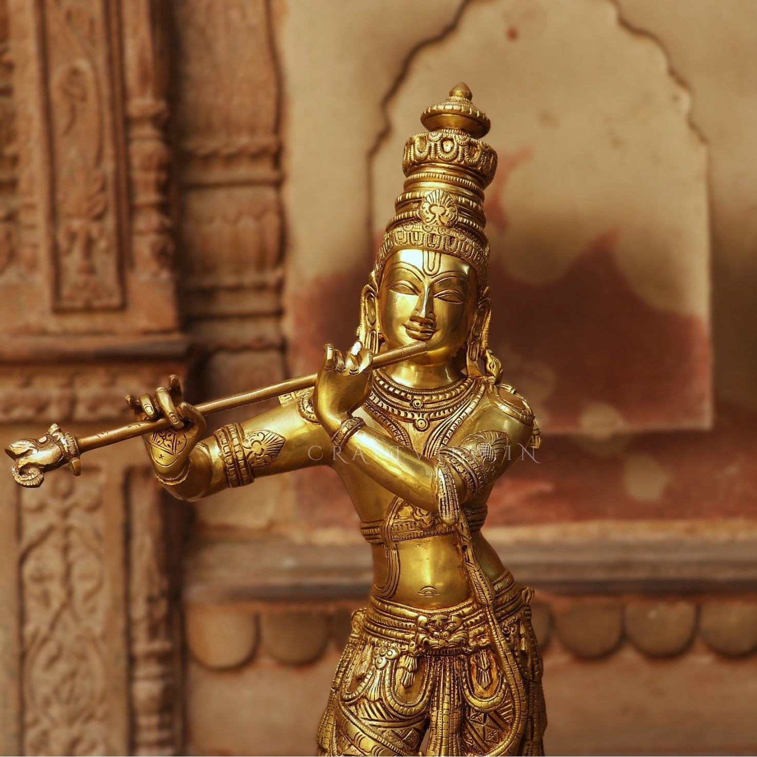 This exceptionally artistic statue is of Lord Krishna also known as Lord Vishnu. Vishnu pervades the entire universe as its soul.