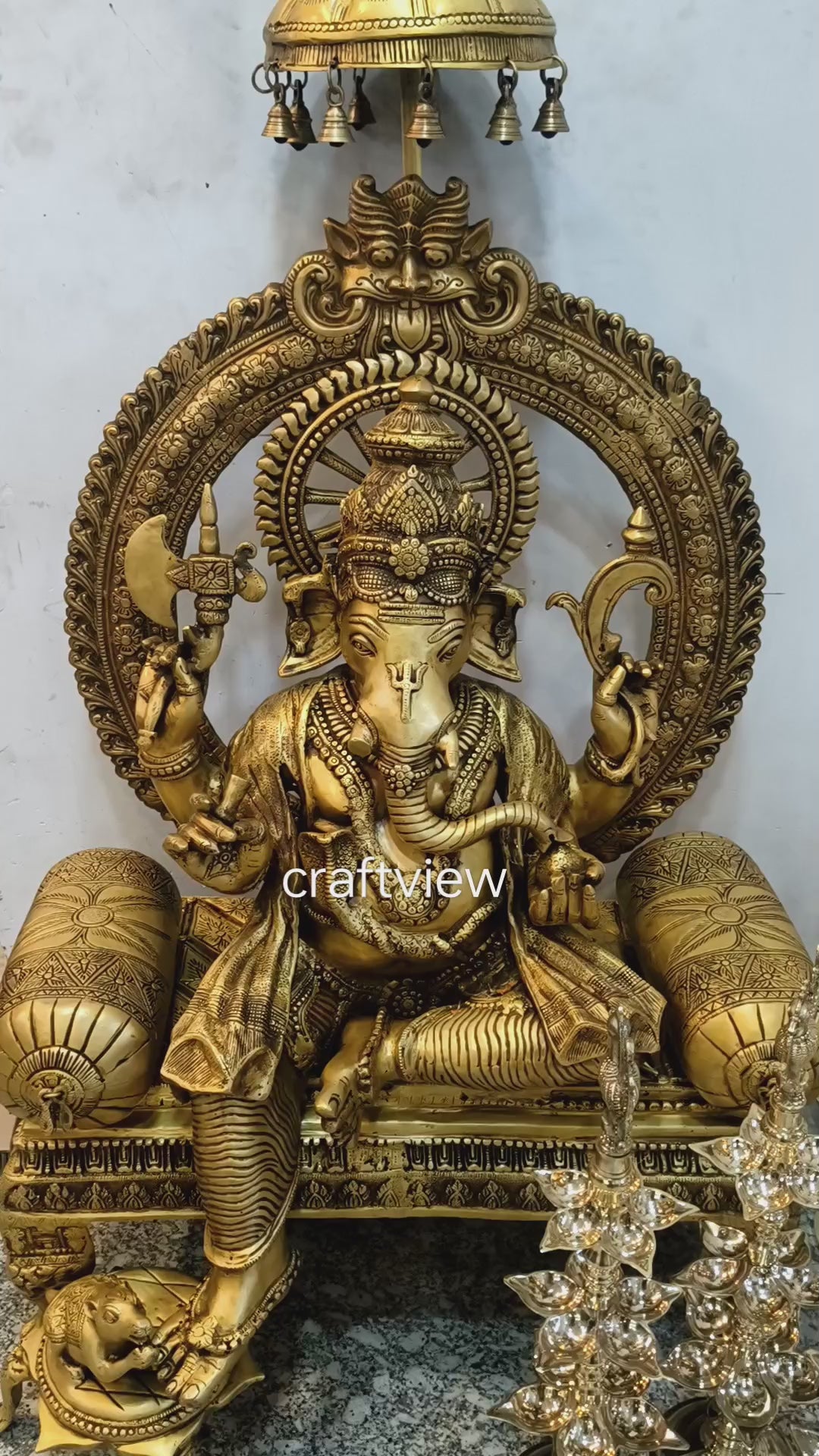 Our Ganesh Statue is crafted from high-quality brass, ensuring durability and beauty. Because we prioritize excellence, each piece is meticulously hand-carved by skilled artisans. This Ganesh Statue stands at an impressive 46.5 inches, making it a standout addition to any room or outdoor area. So whether you're decorating your living space or creating a sacred corner, this statue will leave a lasting impression.