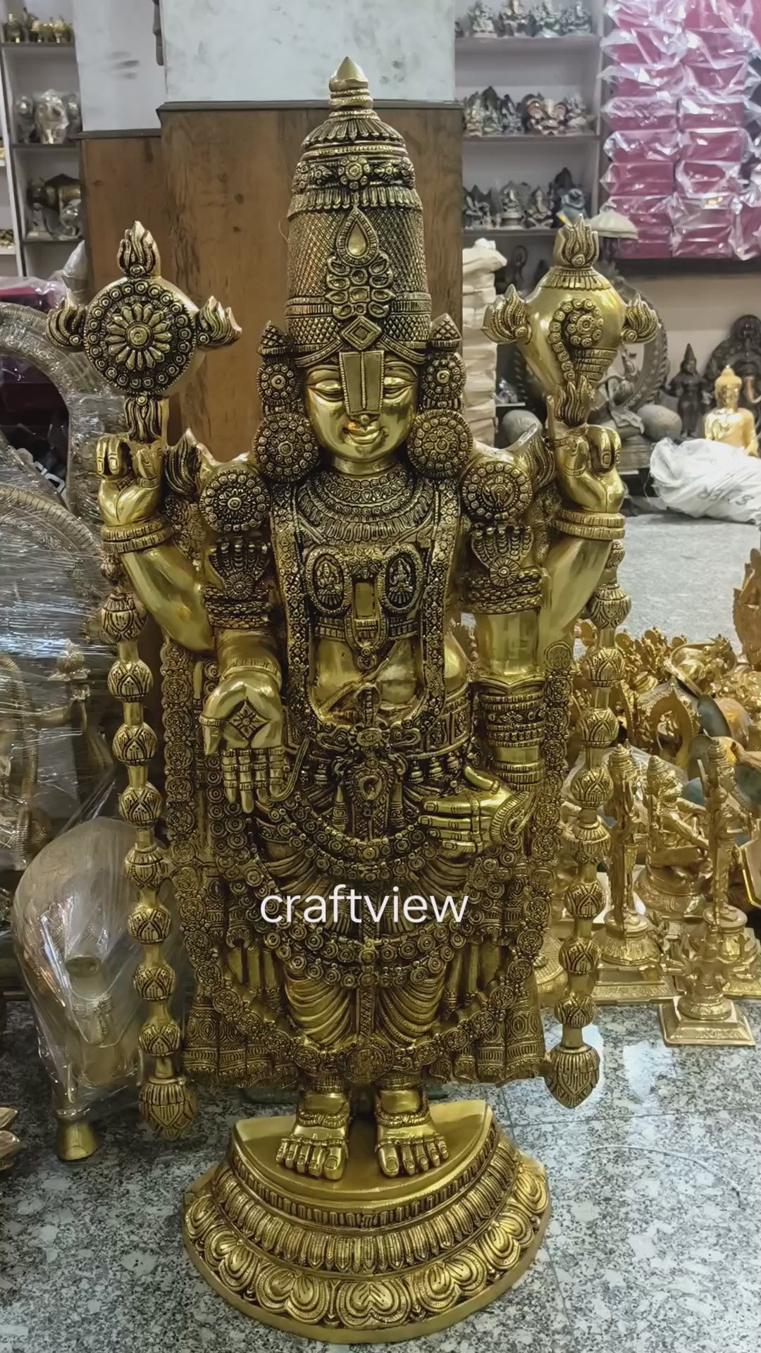 Brass Tirupati Balaji Venkateshwara Statue is a devotional figurine or statue depicting Lord Venkateshwara (also known as Tirupati Balaji), a revered form of Lord Vishnu, widely worshipped in the southern part of India, particularly in the city of Tirupati, Andhra Pradesh. Lord Venkateshwara is believed to be the god of wealth and prosperity, and devotees often seek his blessings for success, well-being, and spiritual growth.