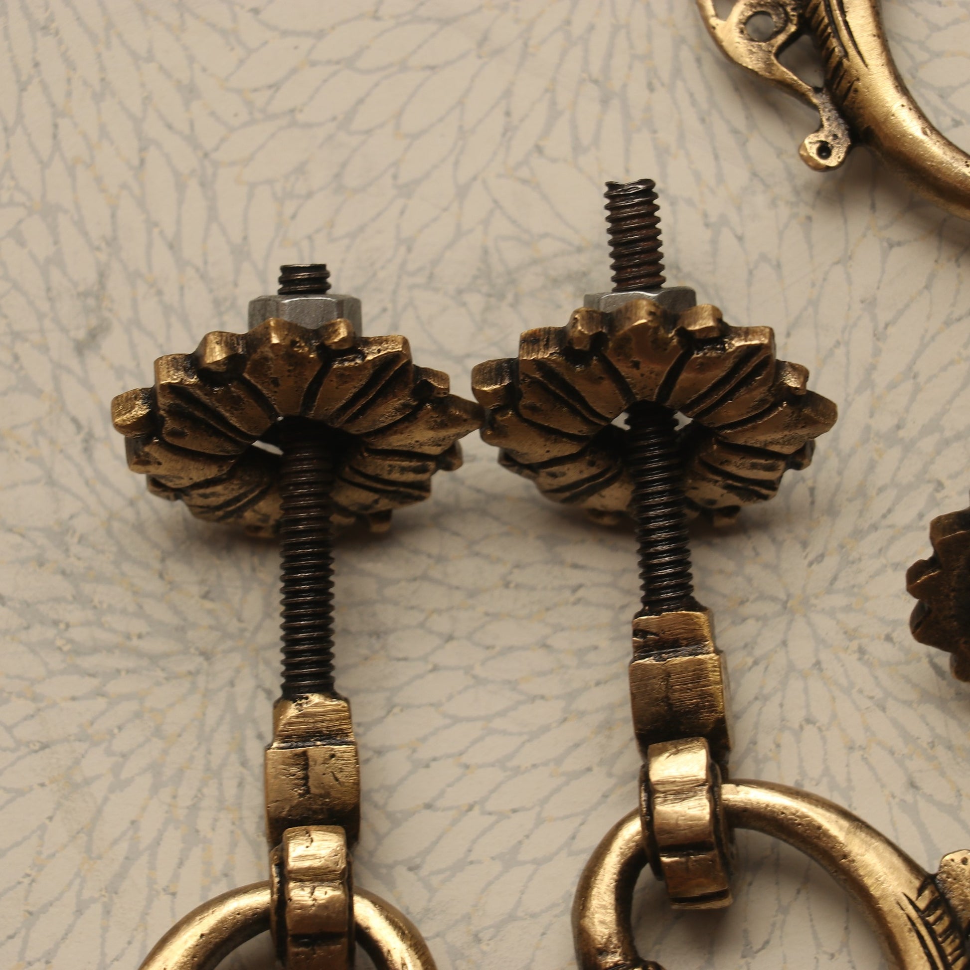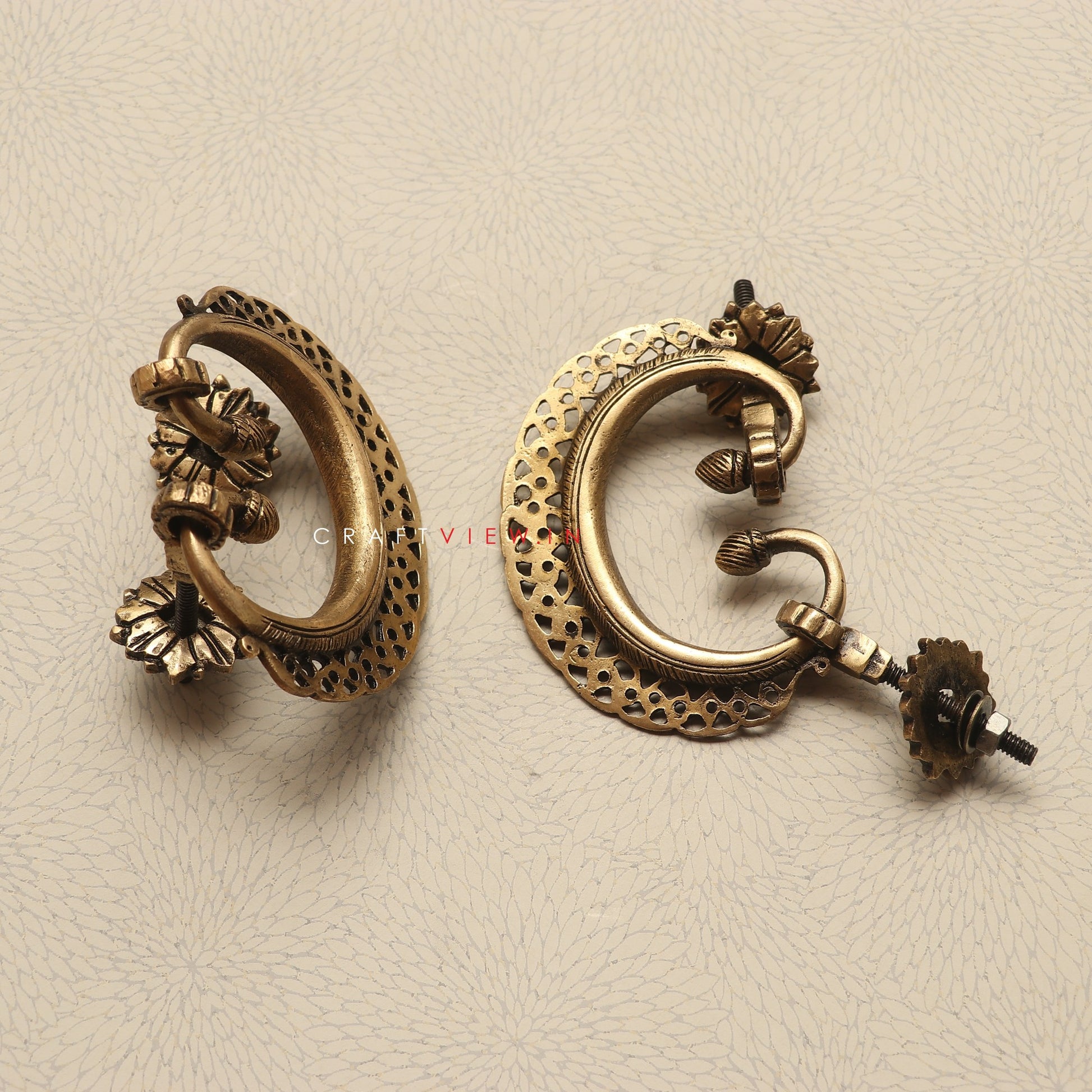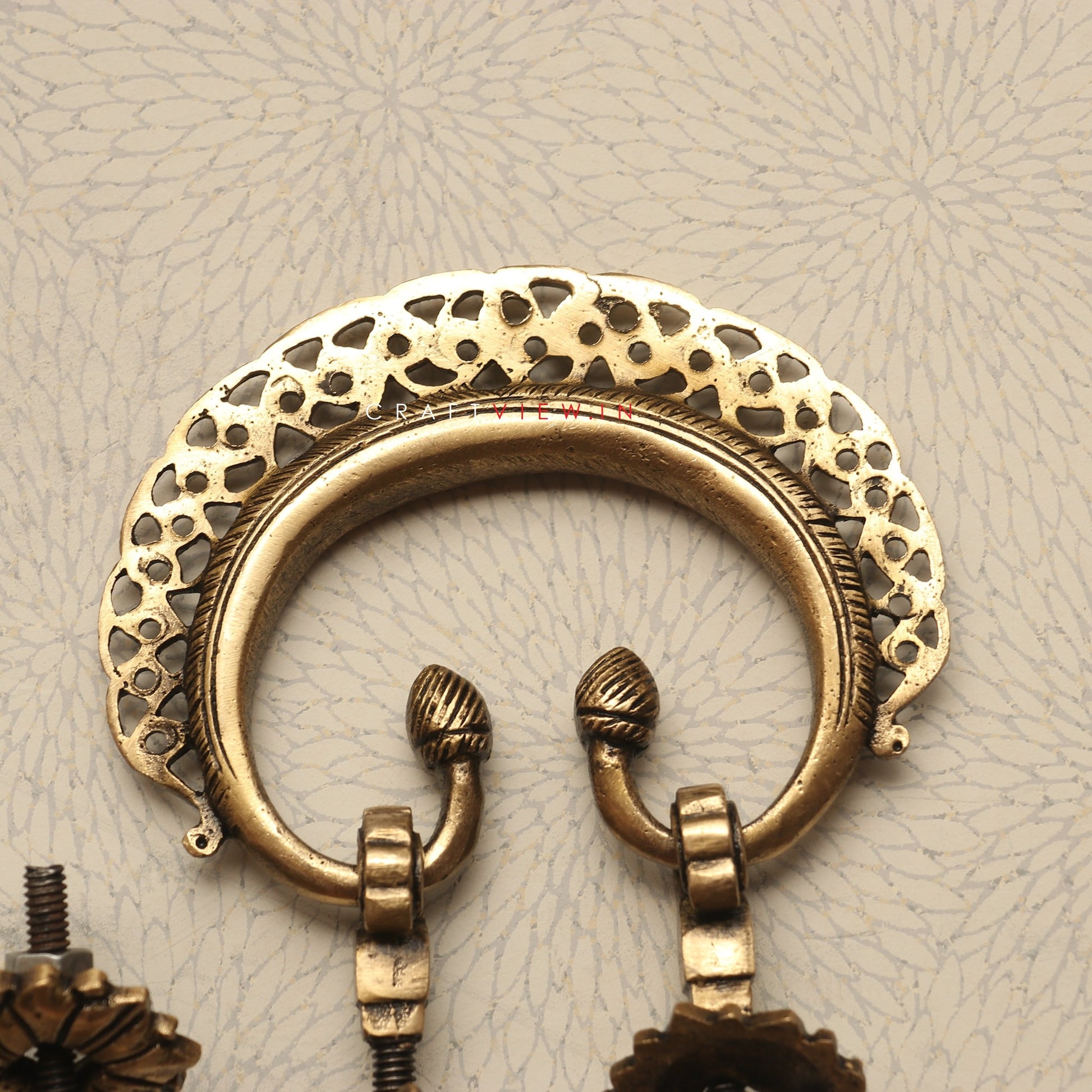 The door knobs featured here are more than mere hardware; they are miniature works of art. Handcrafted from solid brass, these knobs carry a regal presence with their ornate patterns and vintage finish. The finely perforated detailing and the antique design evoke memories of traditional Indian craftsmanship, often seen in palaces and heritage havelis.