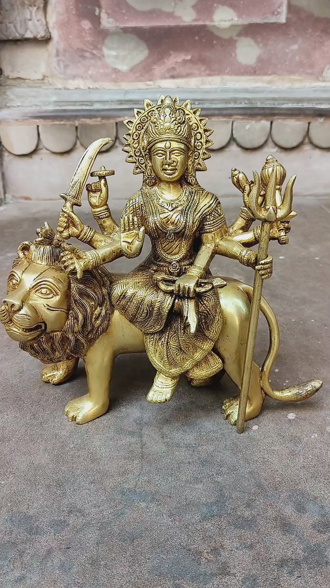This beautiful statue of Ma Sherawali sitting on the lion gracefully is crafted by the lost wax technique. The floral pedestal has been thoughtfully designed to bring additional charm to this statue.