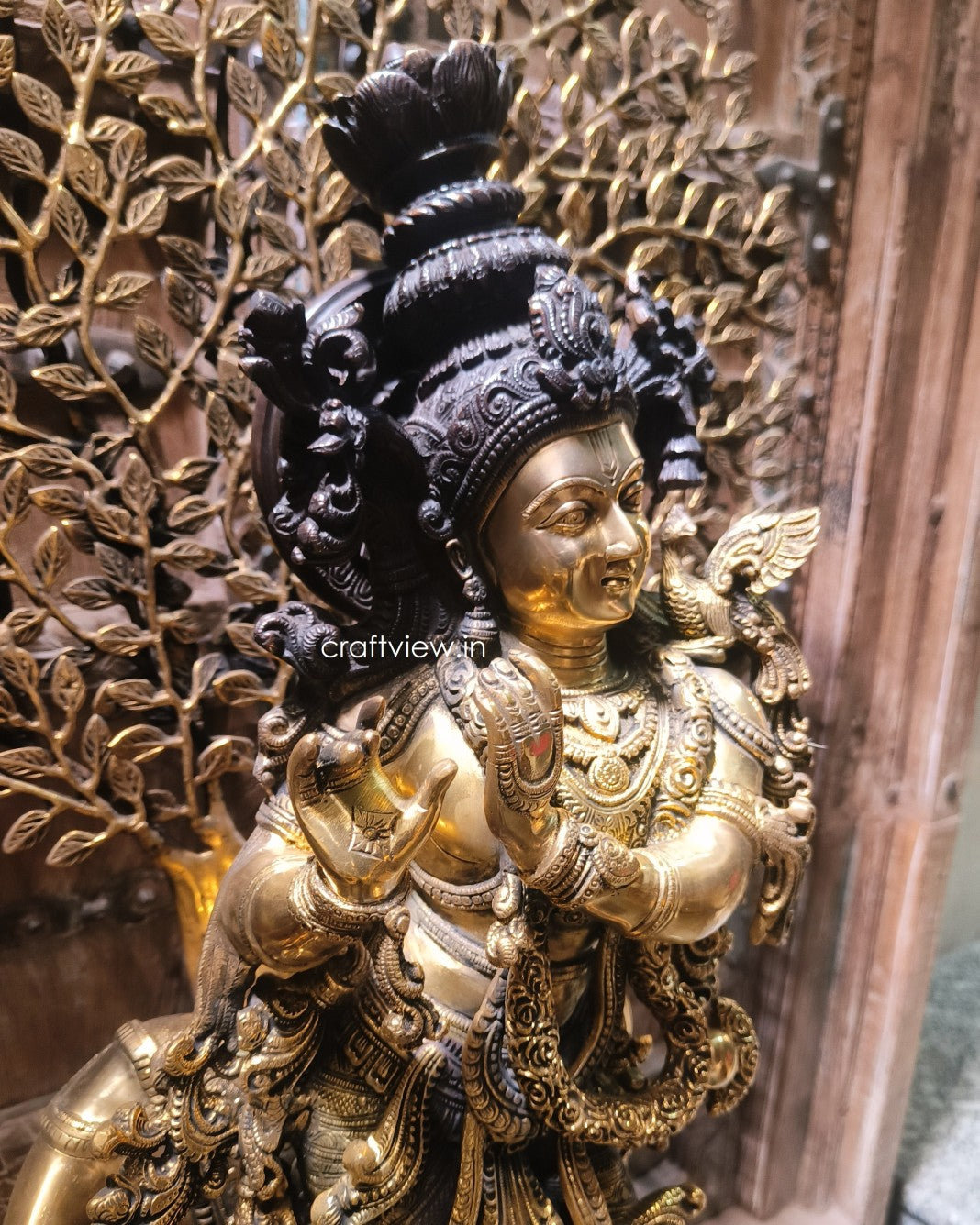Whether you're looking to enhance your living room or create a serene meditation corner, this Krishna statue fits perfectly into any setting. And because it includes a tree motif, it adds an extra layer of symbolism and elegance. Because of its versatility, it works well in both traditional and modern homes, making it a timeless piece of décor.