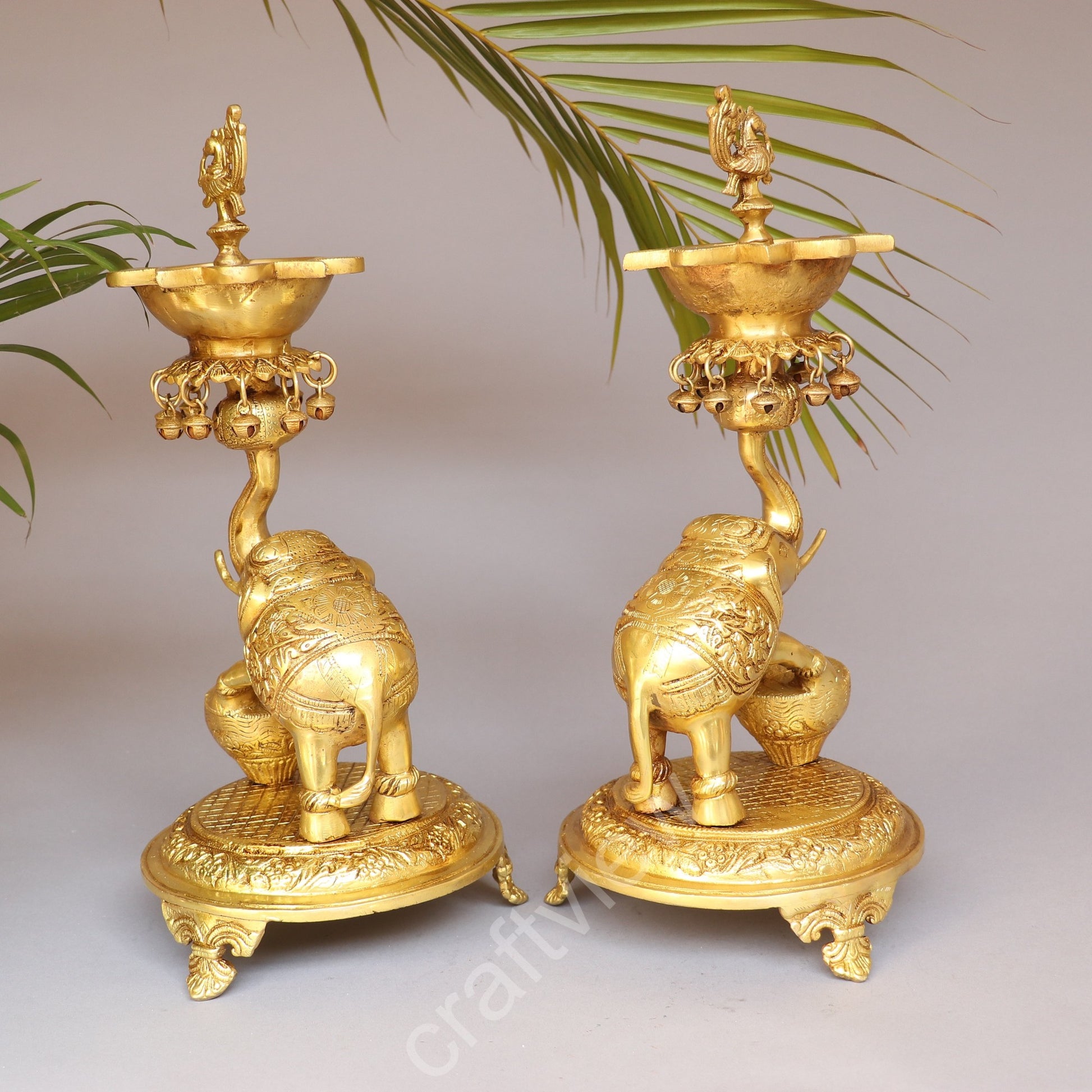 Brass Pair of Elephant with Oil Lamp 18"