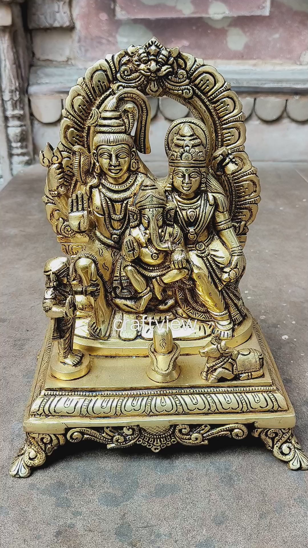 Brass Shiva Family Statue is a divine and symbolic representation of Lord Shiva, his consort Parvati, and their two children, Ganesha and Kartikeya. This statue depicts the ideal family in Hindu mythology, symbolizing unity, love, strength, and spiritual harmony. Each member of the Shiva family has a unique significance and together, they represent the balance of creation, destruction, wisdom, and devotion.