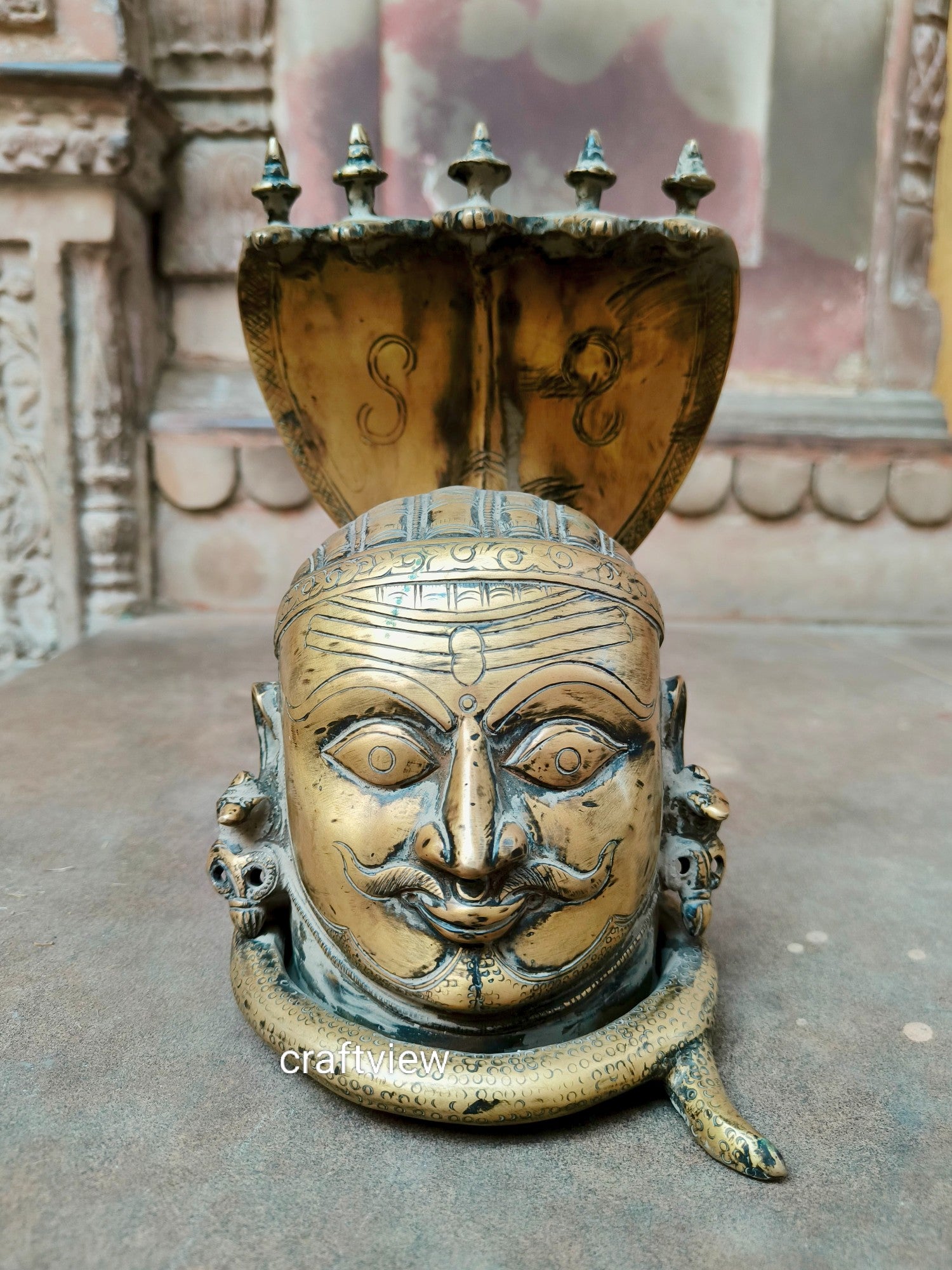 Brass Shiva Mukhlinga with five headed serpent , Nagabharanam .