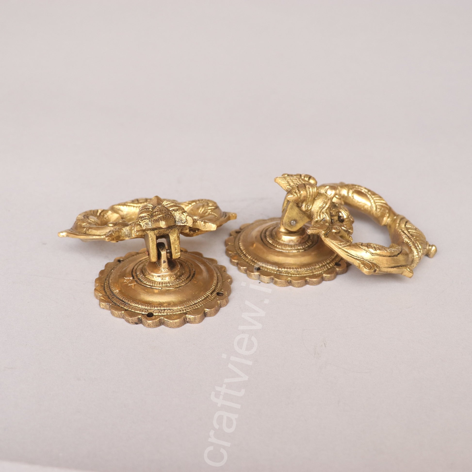 Vintage Brass Hand Mudra Knobs Pair | Pital Traditional Door/Cabinet Handle Set
