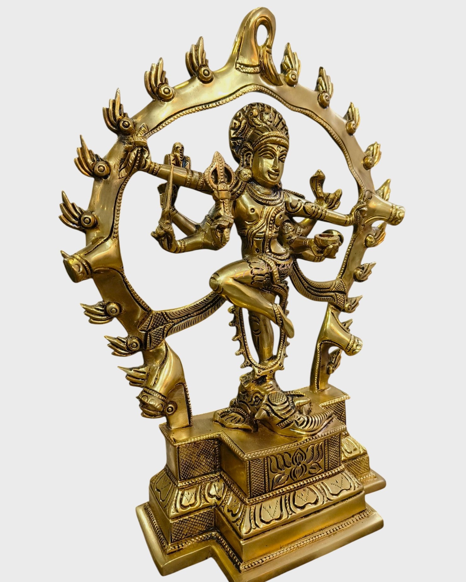 Brass Natraj Statue is a powerful and symbolic representation of Lord Shiva in his form as the Cosmic Dancer, Nataraja. Nataraja is one of the most iconic depictions of Lord Shiva, embodying the dynamic forces of creation, preservation, and destruction in the universe. The Natraj statue, crafted in brass, is not only a beautiful work of art but also a potent symbol of the eternal dance of life, the balance of the cosmos, and the liberation of the soul
